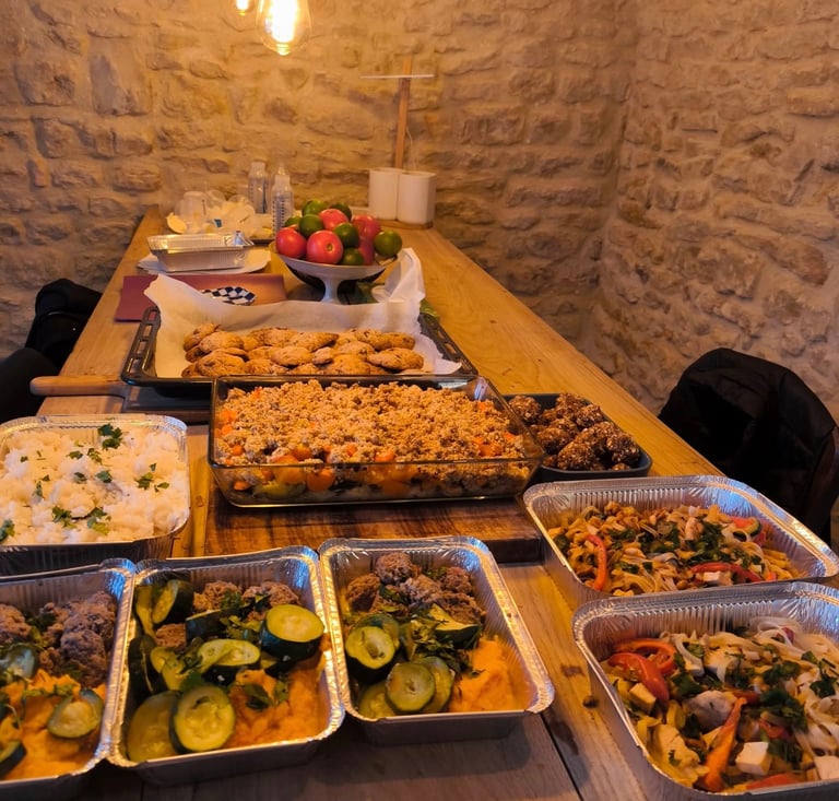 Lors de votre dernier trimestre de grossesse ou pendant votre post-partum, je vous propose de venir cuisiner chez vous. Vous choisissez 3 plats et 2 snacks dans les menus que je vous propose. Je vous envoie la liste des ingrédients et nous fixons une date ensemble. Les plats et snacks sont sélectionnés avec soin pour apporter l'énergie nécessaire au corps pour récupérer après la grossesse et l'accouchement. J'utilise également des ingrédients galactogènes qui facilite la lactation.